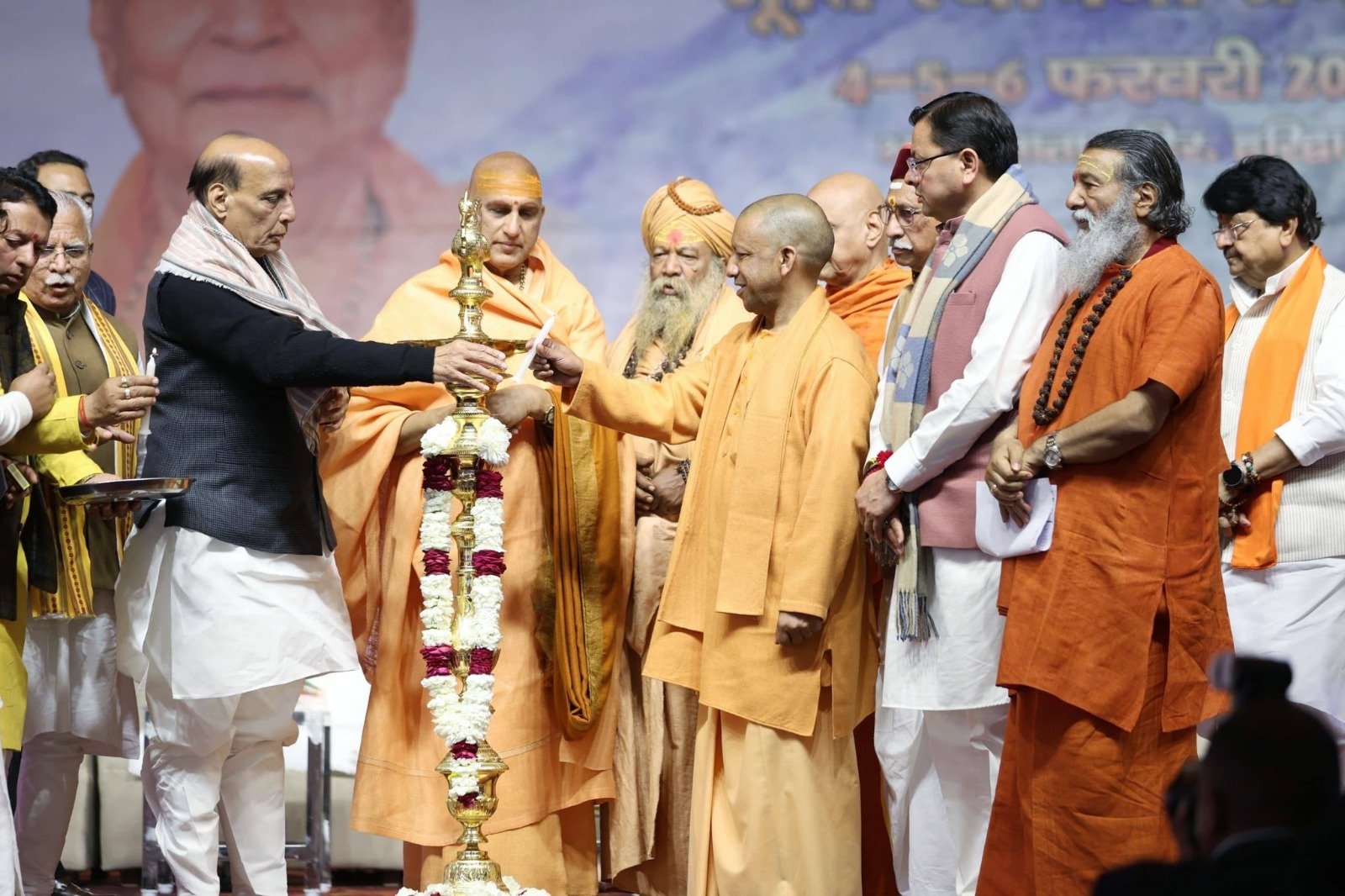 आज के कार्यक्रम में मुख्य अतिथि के रूप में केन्द्रीय रक्षामंत्री राजनाथ सिंह, उत्तर प्रदेश के मुख्यमंत्री योगी आदित्यनाथ की विशेष उपस्थित रही। विशिष्ट अतिथि के रूप में, उत्तराखण्ड के मुख्यमंत्री पुष्कर सिंह धामी, केन्द्रीय उर्जा तथा आवास एवं शहरी मंत्री मनोहर लाल, कार्ष्णि पीठाधीश्वर अनन्तश्रीविभूषित स्वामी गुरूशरणानन्द महाराज, निर्वाणपीठाधीश्वर आचार्यमहामण्डलेश्वर अनन्तश्रीविभूषित स्वामी विशोकानन्द महाराज, श्रीरामजन्मभूमि न्यास के कोषाध्यक्ष परम पूज्य स्वामी गोविन्ददेव गिरि महाराज, उत्तराखण्ड विधानसभा की अध्यक्षा श्रीमती ऋतु खंडूरी, उत्तर प्रदेश के उप-मुख्यमंत्री ब्रजेश पाठक, मध्य प्रदेश के नगरीय विकास एवं संसदीय कार्य मंत्री कैलाश विजयवर्गीय, उत्तराखण्ड के पूर्व-मुख्यमंत्री एवं पूर्व-केन्द्रीय मंत्री डॉ. रमेश पोखरियाल निशंक, कैबिनेट मंत्री गणेश जोशी, हरिद्वार के सांसद त्रिवेन्द्र सिंह रावत की उपस्थिति रही।