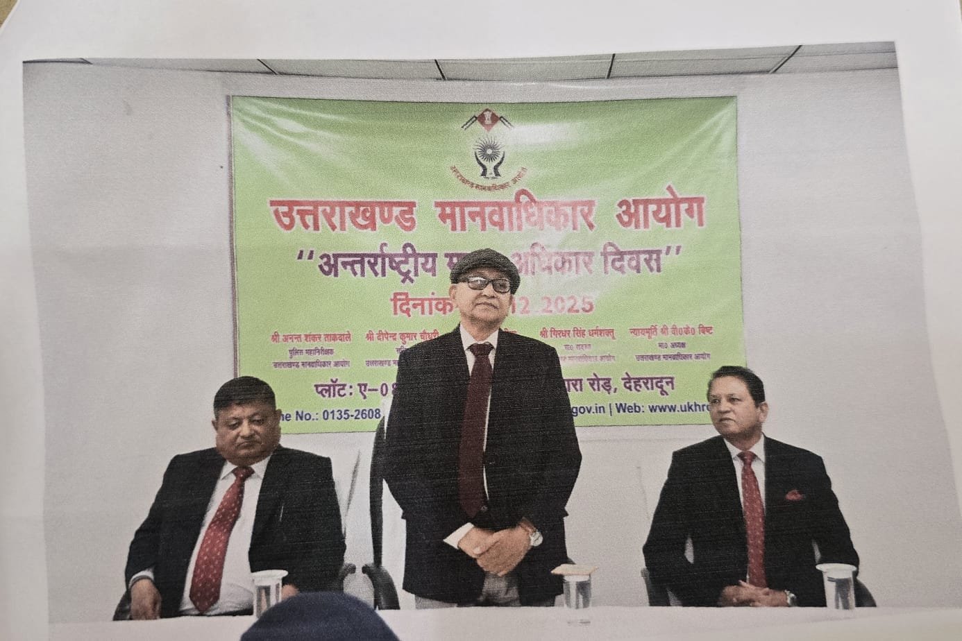 देहरादून, 11 दिसंबर। अन्तर्राष्ट्रीय मानवाधिकार दिवस के अवसर पर उत्तराखण्ड मानवाधिकार आयोग कार्यालय, देहरादून में कार्यक्रम आयोजित किया गया। कार्यक्रम को प्रारम्भ करते हुए मा० सदस्य गिरधर सिंह धर्मशक्तू द्वारा मानवाधिकार दिवस मनाये जाने की पृष्ठभूमि पर प्रकाश डालते हुए मानवाधिकार दिवस-2025 की थीम “Human Rights’s Our Everyday Essentials” के संबंध में जानकारी दी गयी। तत्पश्चात मा० सदस्य  राम सिंह मीना द्वारा मानव अधिकार के संबंध में जानकारी देते हुए आयोग के कार्मिकों को आयोग में योजित समस्त वादों / शिकायतों पर पूर्ण मनोयोग के साथ त्वरित कार्यवाही करने तथा जनता को न्याय दिलाकर उनके मानवाधिकारों के संरक्षण पर जोर दिया। अंत में मा० अध्यक्ष  द्वारा आयोग के समस्त कार्मिकों को आयोग कार्यालय के माहौल को सौहार्दपूर्ण बनाये जाने एवं मानव अधिकार से संबंधित समस्त प्रकरणों पर पूर्ण संवेदनशीलता के साथ कार्य करने के संबंध में कहा गया।