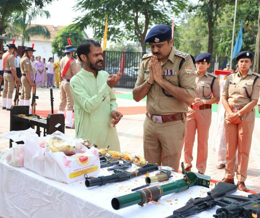 आज विजयदशमी के पावन अवसर पर वरिष्ठ पुलिस अधीक्षक देहरादून द्वारा पुलिस लाइन देहरादून स्थित शस्त्रागार में विधिवत शस्त्र पूजन किया गया। पुलिस विभाग में वर्षों से चली आ रही इस परम्परा के दौरान पुलिस अधिकारियों तथा जवानांे द्वारा शस्त्रों की पूजा करते हुए अपने शांति, सेवा तथा सुरक्षा के मूल मंत्र को दोहराते हुए बेहतर एवं सुरक्षित समाज के संकल्प को दोहराया गया। इसके उपरान्त वरिष्ठ पुलिस अधीक्षक देहरादून द्वारा पुलिस लाइन स्थित अश्वशाला में नवनिर्मित सूर्या मन्दिर का पूजा अर्चना करते हुए विधिवत उद्घाटन किया गया।