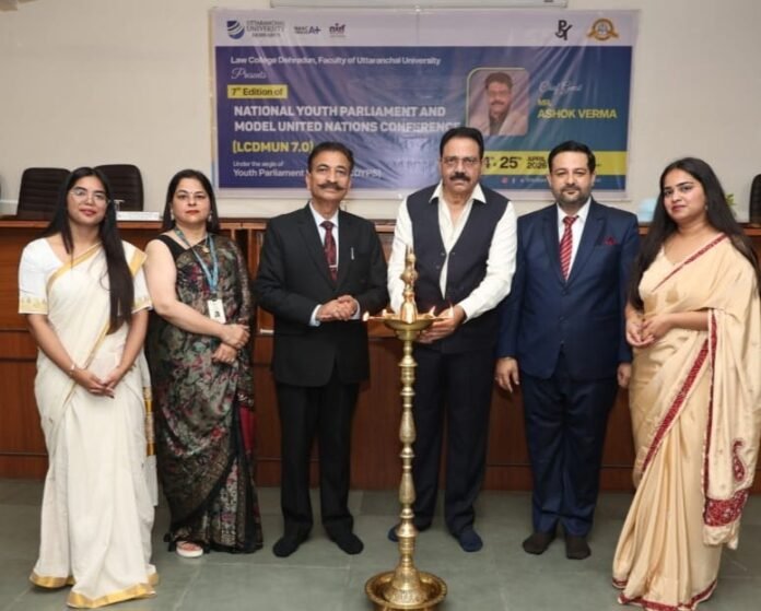 देहरादून 25 अप्रैल। उत्तरांचल विश्वविद्यालय के लाॅ काॅलेज देहरादून में आज काॅलेज की 7वीं राष्ट्रीय माॅडल यूनाइटेड नेशन काॅन्फ्रेंस का भव्य शुभारम्भ किया गया। 2 दिन चलने वाली इस काॅन्फ्रेंस में 300 से अधिक युवा सांसदों ने भागीदारी की। उत्तराखण्ड अन्य पिछड़ा वर्ग परिषद के उपाध्यक्ष अशोक वर्मा इस अवसर पर बतौर मुख्य अतिथि उपस्थित थे।
