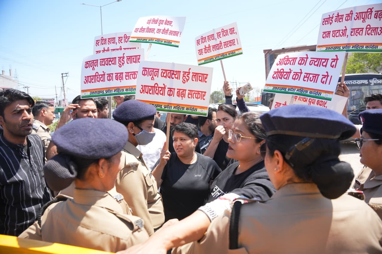 इस दौरान महिला कांग्रेस कार्यकर्ताओं और पुलिस के बीच तीखी नोकझोंक के साथ झड़प की स्थिति उत्पन्न हो गई। आक्रोशित कार्यकर्ताओं ने “प्रधानमंत्री गो बैक” के नारे लगाते हुए जोरदार विरोध प्रदर्शन किया। स्थिति को नियंत्रित करने के लिए पुलिस ने प्रदेश अध्यक्ष ज्योति रौतेला सहित सभी प्रदर्शनकारियों को हिरासत में लेकर पुलिस लाइन भेज दिया। इस संबंध में जारी बयान में प्रदेश अध्यक्ष ज्योति रौतेला ने प्रदेश सरकार और केंद्र सरकार पर तीखा हमला बोलते हुए कहा कि उत्तराखंड में कानून व्यवस्था पूरी तरह चरमरा गई है और आम नागरिक खुद को असुरक्षित महसूस कर रहा है। उन्होंने कहा कि अंकिता भंडारी हत्याकांड में अब तक पीड़ित परिवार को पूर्ण न्याय नहीं मिल पाया है, वहीं सीबीआई जांच में हो रही देरी ने जनता के आक्रोश को और बढ़ा दिया है। उन्होंने आरोप लगाया कि प्रदेश में महिलाओं के खिलाफ अपराधों में लगातार बढ़ोतरी हो रही है, जबकि सरकार इस दिशा में ठोस और प्रभावी कदम उठाने में विफल रही है। इसके साथ ही निजी विद्यालयों द्वारा मनमानी फीस वृद्धि और शिक्षा के बढ़ते व्यापारीकरण ने अभिभावकों पर अतिरिक्त आर्थिक बोझ डाल दिया है। ज्योति रौतेला ने कहा कि प्रदेश में अवैध खनन और भ्रष्टाचार अपने चरम पर है, जबकि युवा बेरोजगारी के चलते निराश हैं और पलायन के लिए मजबूर हो रहे हैं। उन्होंने यह भी कहा कि एलपीजी गैस की कमी से आम जनता के साथ-साथ होटल एवं पर्यटन व्यवसाय से जुड़े व्यापारी गंभीर संकट का सामना कर रहे हैं। आगामी चार धाम यात्रा को देखते हुए यह स्थिति और भी चिंताजनक बन गई है। उन्होंने आगे कहा कि ग्रामीण एवं पहाड़ी क्षेत्रों में वन्यजीवों के हमलों की घटनाएं लगातार बढ़ रही हैं, जिससे आम जनता में भय का माहौल व्याप्त है और लोग अपने ही घरों में असुरक्षित महसूस कर रहे हैं। प्रदेश अध्यक्ष ने स्पष्ट चेतावनी देते हुए कहा कि यदि इन ज्वलंत मुद्दों पर सरकार ने शीघ्र ठोस और प्रभावी कदम नहीं उठाए, तो महिला कांग्रेस प्रदेशभर में उग्र और व्यापक आंदोलन के लिए बाध्य होगी। इस अवसर पर प्रदेश महिला कांग्रेस उपाध्यक्ष आशा मनोरमा शर्मा, महासचिव शोभा बडोनी, रुचि रौतेला, बबीता, मधु उनियाल, स्वीकृति, पार्षद लख्खी बाग आयुष गुप्ता, पूर्व पार्षद बंजारावाला ललित भद्री, पूर्व प्रदेश सचिव फारूक, धर्मपुर विधानसभा उपाध्यक्ष गौरव रावत, अभिषेक डोबरियाल, शशांक जोशी, अरुण टम्टा, सोनू तिवारी, अनुज सहित बड़ी संख्या में स्थानीय लोग उपस्थित रहे।