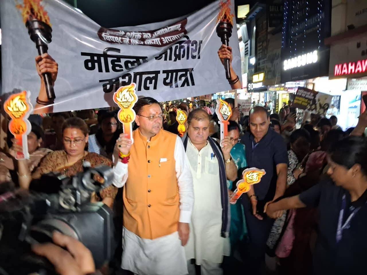 आक्रोश मशाल यात्रा में मुख्य रूप से प्रदेश महामंत्री श्रीमती दीप्ति रावत जी महानगर प्रदेश अध्यक्ष महानगर प्रदेश अध्यक्ष महिला मोर्चा श्रीमती रुचि भट्ट महिला मोर्चा के प्रभारी शैलेंद्र बिष्ट प्रदेश की मंत्री श्रीमती नेहा जोशी दर्जाधारी राज्य मंत्री श्रीमती विनोद उनियाल प्रदेश महामंत्री महिला मोर्चा डॉo  हिमानी वैष्णवी महानगर उपाध्यक्ष श्रीमती सुधा प्रधान श्रीमती मीनाक्षी गोदियाल श्रीमती हेमा परिहार महामंत्री मनोरमा कला मंत्री  पूनम मंगाई श्रीमती बीना भाटिया श्रीमती पूजा दत्त प्रियंका सैनी सुमन साहनी नेहा कटारिया आदि बड़ी संख्या में महिलाएं उपस्थित थी।