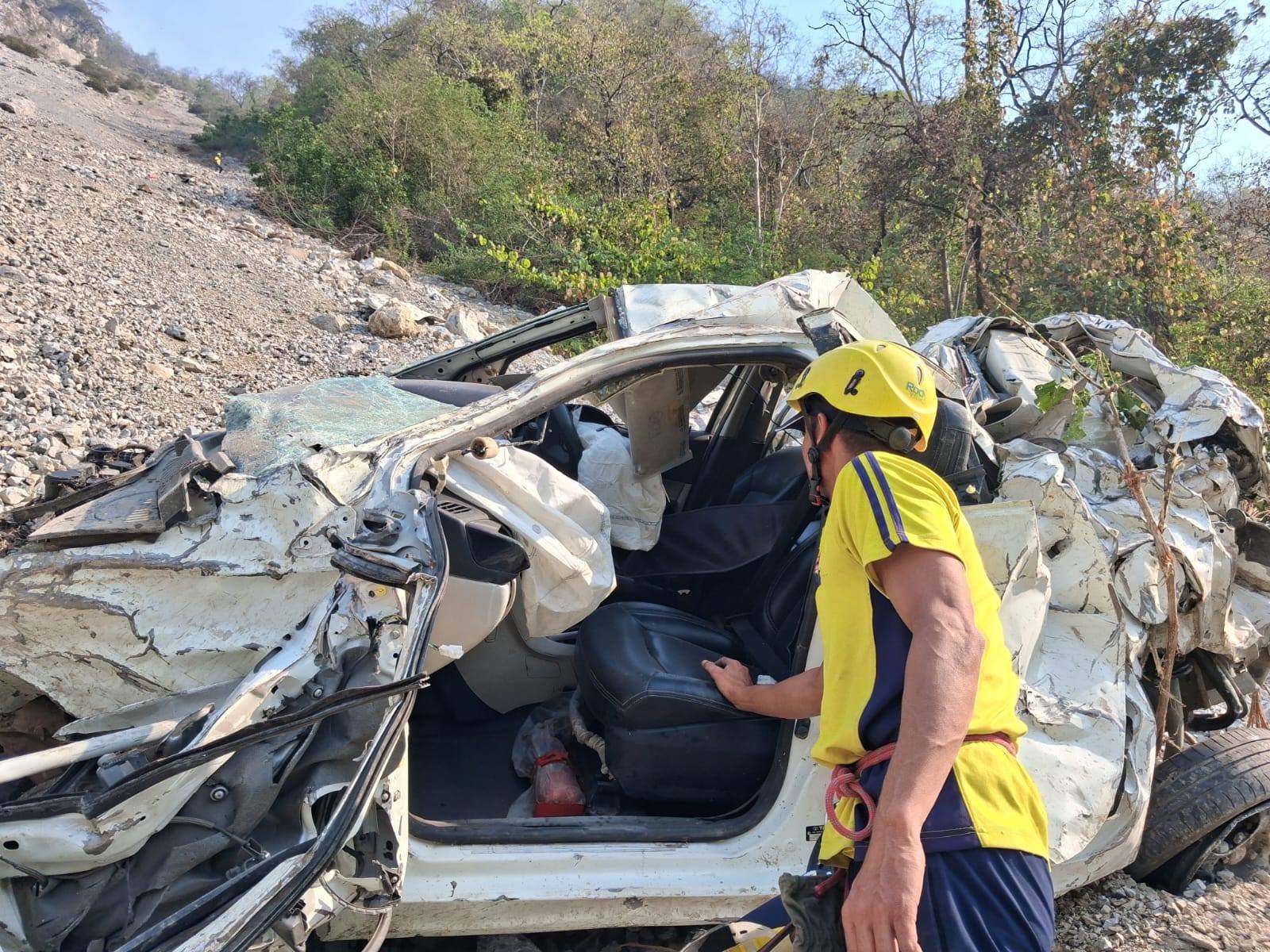 आज सुबह जनपद टिहरी गढ़वाल के तोता घाटी क्षेत्र में एक कार अनियंत्रित होकर लगभग 350 मीटर गहरी खाई में गिरकर नदी किनारे जा पहुँची। वाहन में दिल्ली निवासी युवक और युवती सवार थे। सूचना मिलते ही एसडीआरएफ टीम उप निरीक्षक सावर सिंह के नेतृत्व में तुरंत मौके पर पहुँची और दुर्गम परिस्थितियों में रेस्क्यू ऑपरेशन शुरू किया। टीम ने गहरी खाई में उतरकर दोनों घायलों अनीश 22 वर्ष , युवती सोहनी 20 वर्ष तक पहुँच बनाई। घायल युवक को प्राथमिक उपचार देने के बाद राफ्ट के जरिए सुरक्षित कोडियाला पहुँचाया गया, जहाँ से 108 एम्बुलेंस द्वारा अस्पताल भेजा गया। वहीं लापता युवती की सघन सर्चिंग कर उसे भी सकुशल बरामद कर लिया। ऐसे दुर्गम हालात में दोनों युवाओं अनीश 22 वर्ष घायल, युवती सोहनी, 20 वर्ष की जान बचाना बेहद सराहनीय कार्य है।
