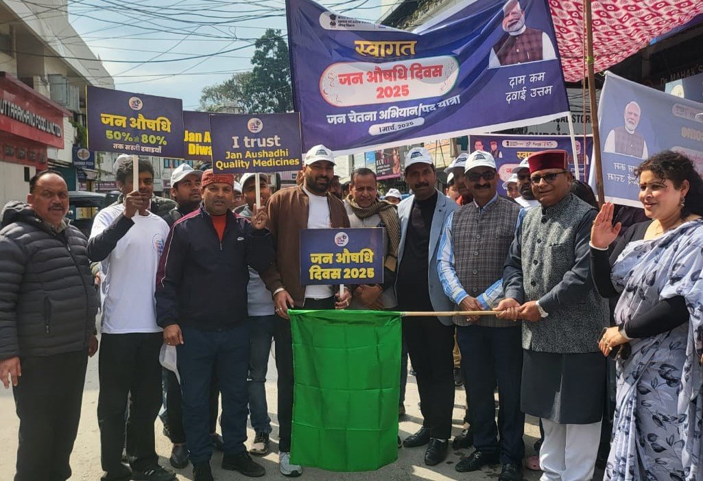 देहरादून 01 मार्च। प्रधानमंत्री नरेंद्र मोदी के ड्रीम प्रोजेक्ट जन औषधि केंद परियोजना के माध्यम से हर गरीब को दवाई सस्ते दामों में उपलब्ध हो के अंतर्गत हर वर्ष की भांति इस वर्ष भी 7 मार्च को जन औषधि दिवस मनाया जा रहा है। जिसके तहत आज प्रातः 10.30 बजे जन औषधि केंद्र टैगोर विला से एक जन चेतना यात्रा का आयोजन किया गया। जिसे राजपुर विधायक खजान दास ने झंडी दिखाकर रवाना किया। इस अवसर पर अपने विचार व्यक्त करते हुये विधायक खजान दास ने कहा कि प्रधानमंत्री नरेंद्र मोदी ने जन औषधि परियोजना के माध्यम से आम आदमी को उपचार के लिये दवाइयां सस्ते दामों पर उपलब्ध करवाकर जनता को राहत प्रदान करी है। जिससे उनका दवाइयों का खर्च आधे से भी कम हो गया है और जनता के घर का बजट जो दवाइयों के कारण डगमगाने लगा था उससे उन्हें निजात मिली है। जन औषधि केंद्र के माध्यम से जनता को उच्च गुणवत्ता की दवाइयां कम दामों पर मिल रही हैं, जो आम केमिस्ट की दुकान पर उपलब्ध महंगी दवाइयों से कमतर नहीं हैं। उन्होंने कहा की वह जन औषधि परियोजना के उत्तराखंड के जन औषधि केंद्र संचालकों का आभार प्रकट करते हैं कि वे जनता की सहूलियत के लिए कम कमाई करते हुए भी जन औषधि की दवाइयां उपलब्ध करवाने में अपना सहयोग कर रहे है। जन औषधि -जन चेतना पद यात्रा में जन औषधि परियोजना के उत्तराखंड प्रभारी शिवम् राघव, उत्तराखंड के डिस्ट्रीब्यूटर समित अग्रवाल, जन औषधि केंद्र संचालक हरीश नारंग, पूर्व पार्षद सतीश कपूर, भाजपा नेता श्रीमती लक्ष्मी अग्रवाल, रणजीत भंडारी, आनंद यादव, श्रीमती लक्ष्मी पाल, सुरजीत सिंह, विनोद शाह, प्रवीण नारंग, श्रीमती ऋचा नारंग, रवींद्र चौधरी सहित भरी संख्या में जन औषधि के लाभार्थी उपस्थित रहे।