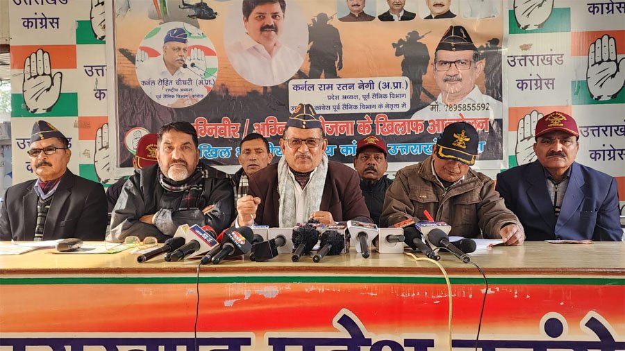 देहरादून, 26 दिसंबर। उत्तराखण्ड कांग्रेस पूर्व सैनिक विभाग के अध्यक्ष कर्नल रामरतन सिंह नेगी ने प्रदेश कांग्रेस मुख्यालय देहरादून में प्रेस को सबोधित करते हुए केंद्र सरकार द्वारा लागू की गई अग्निपथ योजना के विरोध में कांग्रेस पूर्व सैनिक विभाग द्वारा चलाए जा रहे आंदोलन के तहत आयोजित प्रदर्शन रैली एवं हस्ताक्षर अभियान का दूसरा चरण कुमाऊँ मंडल में विभिन्न क्षेत्रों रामनगर, हल्द्वानी, रानीखेत, अल्मोड़ा, बागेश्वर, और जसपुर में सफलतापूर्वक संपन्न किया गया। उक्त कार्यक्रम की सफलता के संबंध में आज प्रदेश कांग्रेस कमेटी कार्यालय देहरादून में प्रेस के माध्यम से कर्नल आर.आर. नेगी द्वारा प्रेस को विस्तृत जानकारी दी गई। कार्यक्रम के दौरान कांग्रेस पूर्व सैनिकों विभाग एव कांग्रेस कार्यकर्ताओं ने उपरोक्त स्थानों पर जाकर आम जनता से संवाद किया तथा केंद्र सरकार की जनविरोधी नीतियों, विशेषकर अग्निवीर योजना के कारण युवाओं के भविष्य पर पड़ने वाले दुष्प्रभावों से जनता को अवगत कराया गया। इस अवसर पर कांग्रेस नेताओं द्वारा कहा गया कि भाजपा सरकार युवाओं को स्थायी रोजगार देने के बजाय अस्थायी और अनिश्चित भविष्य की ओर धकेल रही है। पार्टी ने स्पष्ट किया कि कांग्रेस जनता और युवाओं के हितों की रक्षा के लिए संघर्ष करती रहेगी तथा भाजपा की जनविरोधी नीतियों को जनता के बीच बेनकाब करती रहेगी। इस अवसर पर कांग्रेस के पूर्व सैनिक विभाग के अध्यक्ष रि. कर्नल आर. आर. नेगी ने नेता प्रतिपक्ष यशपाल आर्य, प्रदेश काग्रेस के पूर्व अध्यक्ष करन माहरा, पूर्व विधायक रणजीत रावत सहित कांग्रेस नेतागणों एवं कार्यकर्ताओं का सहयोग के लिए आभार व्यक्त किया। इस अवसर पर प्रदेश कांग्रेस कमेटी के महामंत्री संगठन राजेन्द्र सिंह भण्डारी, कर्नल रि. मोहन सिंह रावत, कैप्टन बचन सिंह नेगी, कैप्टन सहदेव षर्मा, कैप्टन सुषान्त, सुबेदार बलवीर सिंह पंवार, कैप्टन खुषाल सिंह राणा, गोपाल सिंह गडिया, सुबेदार धुलिया लाल, सुवेदार, एस. एस. नेगी आदि उपस्थित थे।