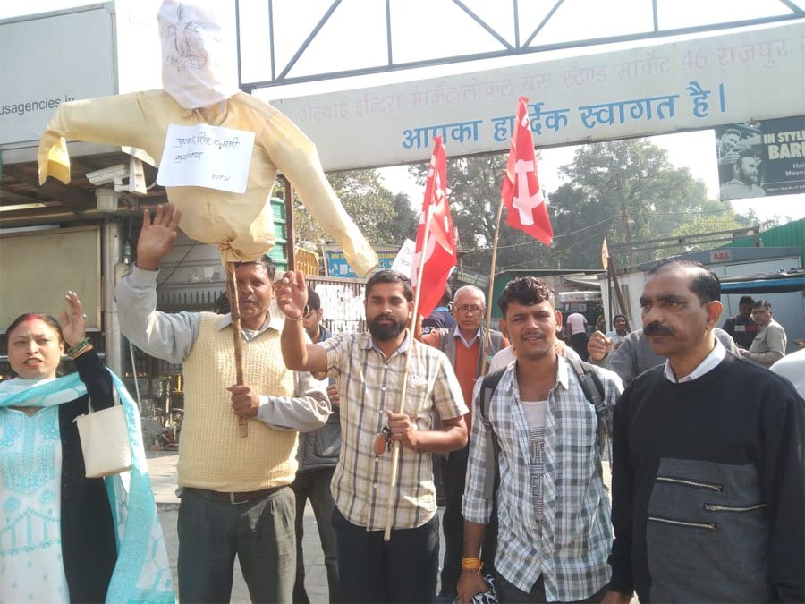 देहरादून । सेन्टर आफ इण्डियन ट्रैड यूनियन्स (सीआईटीयू) ने उत्तराखंड सरकार द्वारा सरकारी कर्मचारियों और अधिकारियों के हड़ताल करने पर रोक का फैसला लिया है। सूबे की धामी सरकार ने अगले 6 महीने के लिए एस्मा एक्ट लगाने के विरोध में राज्य सरकार के सभी विभागों, निगमों और प्राधिकरणों में सरकारी कर्मचारियों की हड़ताल पर छह महीने की अवधि के लिए प्रतिबंध लगाने के विरोध में तथा। आन्दोलनलत उपनल कर्मचारियों के समर्थन में धामी सरकार की कर्मचारी विरोधी नीति के खिलाफ जोरदार नारेबाजी कर सरकार का पुतला दहन किया तथा सरकार सेे अविलम्ब कर्मचारी विरोधी फैसले को वापस लेने की मांग की तथा आन्दोलन रत उपनल कर्मचारियों को नियमतीकरण करने की मांग की है ।प्रर्दशन सीटू कार्यालय से शुरू हो कर राजपुर रोड़ पर सरकार का पुतला दहन किया।