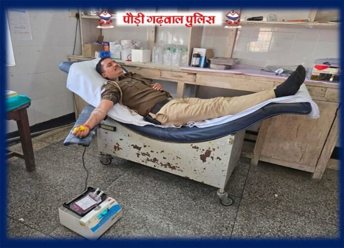 पौड़ी। ग्राम पाबो सिमखेत निवासी श्री जगदीश चंद का स्वास्थ्य अचानक गंभीर हो गया। चिकित्सकीय जांच में उनका हीमोग्लोबिन स्तर मात्र 4.4 पाया गया, जो अत्यंत चिंताजनक स्थिति थी। चिकित्सकों द्वारा तत्काल रक्त की आवश्यकता बताई गई। आपात स्थिति को देखते हुए परिजनों द्वारा रक्तदान हेतु विभिन्न स्तरों पर संपर्क किया गया। इसी क्रम में पौड़ी पुलिस लाइन में नियुक्त हेड कांस्टेबल श्री जामिया दास भारती को जब इस विषय की जानकारी प्राप्त हुई, तो उन्होंने मानवीय कर्तव्य का परिचय देते हुए बिना किसी विलंब के तत्काल जिला चिकित्सालय पौड़ी पहुँचकर रक्तदान किया। समय पर उपलब्ध कराए गए रक्त से मरीज का उपचार संभव हो सका, जिससे उसकी स्थिति में सुधार आया। इस सराहनीय एवं प्रेरणादायक कार्य के लिए अस्पताल प्रशासन तथा मरीज के परिजनों द्वारा पुलिस कर्मी की भूरि-भूरि प्रशंसा की गई।