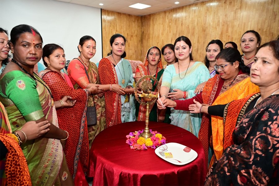 चम्पावत/देहरादून। उत्तराखंड राज्य के मुख्यमंत्री पुष्कर सिंह धामी की धर्मपत्नी श्रीमती गीता पुष्कर धामी ने आज एनएचपीसी सभागार, बनबसा (चम्पावत) में आयोजित जेंडर संवेदीकरण कार्यशाला में महिला स्वयं सहायता समूहों/Cluster Level Federation की महिलाओं के साथ संवाद किया। इस दौरान उन्होंने कहा की महिलाओं द्वारा तैयार किए जा रहे विविध हस्तशिल्प, स्थानीय उत्पादों, नवाचारों और स्वरोज़गार की दिशा में उनके सतत प्रयासों को करीब से देखने और समझने का अवसर विशेष रूप से सुखद रहा।