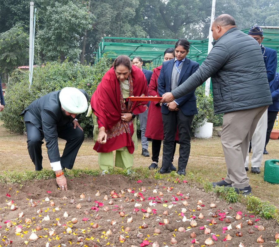 देहरादून 31 दिसम्बर। राज्यपाल लेफ्टिनेंट जनरल गुरमीत सिंह (से नि) ने लोक भवन परिसर में ट्यूलिप बल्ब का रोपण किया। इस वर्ष लोक भवन में ट्यूलिप की 19 विभिन्न प्रजातियों एवं रंगों के कुल 4000 बल्ब रोपित किए जा रहे हैं। इनमें अर्ली, मिड और लेट प्रजातियों के ट्यूलिप बल्ब शामिल हैं, जो वसंतोत्सव 2025 तक पुष्पावस्था में रहेंगे। वसंतोत्सव के दौरान ट्यूलिप पुष्पों में विशेष रूप से ब्लैक, नारंगी एवं पर्पल रंग के ट्यूलिप प्रमुख आकर्षण का केंद्र रहेंगे। प्रदेश में प्रयोगात्मक रूप से पहली बार दो प्रजातियों के 200 ट्यूलिप बल्ब लोक भवन परिसर में रोपित किए गए थे, जिनके परिणाम अत्यंत उत्साहवर्धक रहे। इसके उपरांत निरंतर नई-नई प्रजातियों के ट्यूलिप बल्बों का रोपण किया जा रहा है. इस अवसर पर प्रथम महिला श्रीमती गुरमीत कौर, वित्त नियंत्रक डॉ. तृप्ति श्रीवास्तव तथा उद्यान अधिकारी श्री दीपक पुरोहित भी उपस्थित रहे।