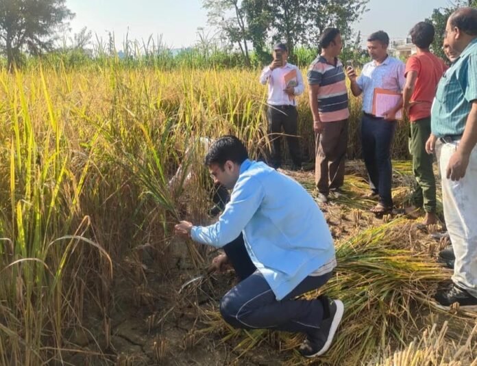 देहरादून। धान के फसल कटाई प्रयोग निरीक्षण के दौरान डीएम सविन बंसल ने दरांति उठा कृषकों संग की फसल कटाई। जिलाधिकारी सविन बंसल ने तहसील देहरादून के ग्राम आर्केडियाग्रांट में फसल धान के फसल कटाई प्रयोग का निरीक्षण किया। इस दौरान जिलाधिकारी ने कृषकों संग खेत में धान की कटाई भी की। जिसमें 43.30 वर्ग मीटर के प्लॉट में 17 किलो 500 ग्राम धान की उपज प्राप्त हुई प्रयोग का संपादन राजस्व उप निरीक्षक द्वारा जी सी ई एस एवं सीसीई एग्री ऐप द्वारा किया गया एवं खेत से ही उत्पादन के डाटा को भारत सरकार के पोर्टल पर अपलोड किया गया उक्त आंकड़ों का प्रयोग फसलों के औसत उपज एवं प्रधानमंत्री फसल बीमा योजना अंतर्गत किया जाता है।