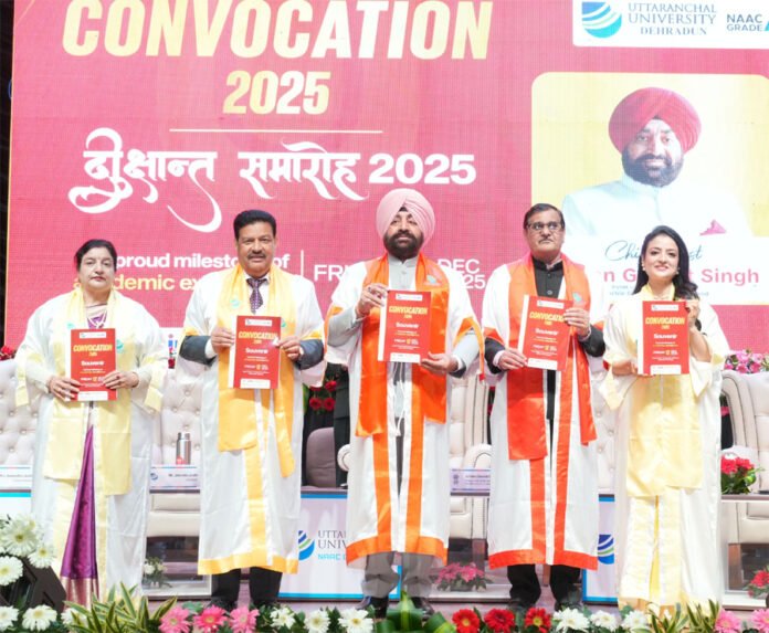 देहरादून 12 दिसम्बर। राज्यपाल लेफ्टिनेंट जनरल गुरमीत सिंह (से नि) ने शुक्रवार को उत्तरांचल विश्वविद्यालय, देहरादून के छठे दीक्षांत समारोह में मुख्य अतिथि के रूप में प्रतिभाग किया। इस अवसर पर उन्होंने उत्तीर्ण हुए विद्यार्थियों को मेडल और उपाधियां प्रदान कर शुभकामनाएं दीं और उनके उज्ज्वल भविष्य की कामना की। इस अवसर राज्यपाल ने विश्वविद्यालय की स्मारिका का विमोचन भी किया। अपने दीक्षांत भाषण में राज्यपाल ने कहा कि यह समारोह केवल डिग्री प्रदान करने का अवसर नहीं, बल्कि विद्यार्थियों के परिश्रम और प्रतिबद्धता का प्रमाण है। उन्होंने उपाधि प्राप्त करने वाले विद्यार्थियों से अपेक्षा है कि वे अपने ज्ञान का उपयोग समाज और राष्ट्र निर्माण में करें। उन्होंने कहा कि शिक्षा का वास्तविक उद्देश्य केवल बुद्धि का विकास न होकर चरित्र निर्माण है, और आज के परिवर्तित वैश्विक परिदृश्य में ईमानदारी, अनुशासन तथा नैतिक मूल्यों का महत्व और बढ़ गया है। राज्यपाल ने विद्यार्थियों को “राष्ट्र प्रथम” की भावना को सदैव सर्वाेपरि रखने का आह्वान किया। उन्होंने कहा कि हमारा ज्ञान तभी सार्थक है जब वह देश के विकास में योगदान दे। राज्यपाल ने विद्यार्थियों का उत्साहवर्धन करते हुए कहा कि वर्ष 2047 तक विकसित भारत के निर्माण में युवाओं की भूमिका सबसे महत्वपूर्ण है। उन्होंने सभी स्नातक विद्यार्थियों को जीवन में सफलता प्राप्त करने और देश व राज्य का गौरव बढ़ाने की शुभकामनाएं दीं। राज्यपाल ने विश्वविद्यालय के बहुविषयी शिक्षा, शोध, नवाचार और स्टार्टअप संस्कृति को बढ़ावा देने के प्रयासों की सराहना की। दीक्षांत समारोह में कुलपति प्रो. धर्मबुद्धि ने उपस्थित सभी लोगों का स्वागत किया और विश्वविद्यालय की उपलब्धियों की जानकारी दी। इस अवसर पर विश्वविद्यालय के अध्यक्ष जितेन्द्र जोशी, उपाध्यक्ष अंकिता जोशी, श्रीमती अनुराधा जोशी, प्रति कुलपति राजेश बहुगुणा, कुलसचिव डॉ. अनुज राणा सहित विश्वविद्यालय के शिक्षा परिषद, कार्य परिषद के सदस्य और छात्र-छात्राएं उपस्थित रहे।