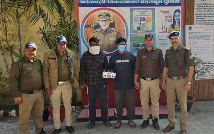 देहरादून। विकासनगर क्षेत्र में कार में हुई टप्पेबाजी की घटना का दून पुलिस ने खुलासा करते हुए घटना में चोरी की गई पिस्टल तथा जिंदा कारतूसों के साथ 02 अभियुक्तों को चैकिंग के दौरान पुलिस ने गिरफ्तार कर लिया हैं। पुलिस के अनुसार नशे की पूर्ति के लिये अभियुक्त द्वारा अपने अन्य साथियों के साथ मिलकर टप्पेबाजी की घटना को अंजाम दिया था।
