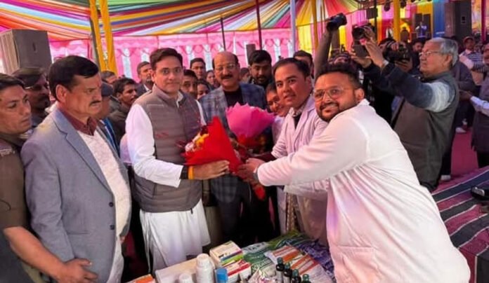 टिहरी गढ़वाल। जनपद टिहरी गढ़वाल के विकासखंड नरेंद्रनगर में सात दिवसीय सिद्धपीठ कोटेश्वर पर्यटन विकास मेला चाका 2026 के समापन अवसर में पशुपालन मंत्री उत्तराखंड सरकार सौरभ बहुगुणा के मुख्य अतिथि के रूप में उपस्थित होने के अवसर पर पुष्पगुच्छ के साथ स्वागत किया गया। मुख्य पशु चिकित्साधिकारी टिहरी गढ़वाल डॉ डी.के. शर्मा के दिशानिर्देशन में पशुपालन विभाग का स्टाल लगाया गया।
