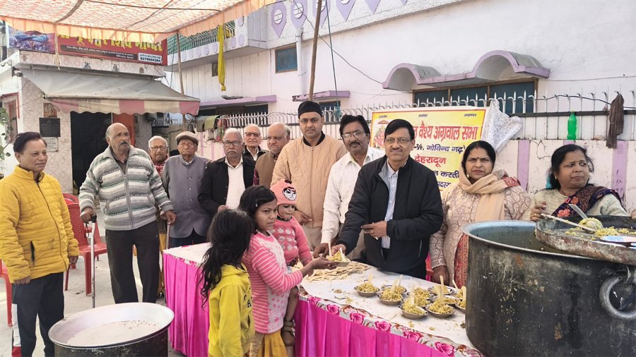 देहरादून 15 जनवरी । उत्तरांचल वैश्य अग्रवाल सभा, गोविंदगढ़ देहरादून द्वारा मकर संक्रांति के पावन अवसर पर 20वां खिचड़ी वितरण कार्यक्रम श्रद्धा, सेवा और सामाजिक समरसता के भाव के साथ आयोजित किया गया। कार्यक्रम में क्षेत्र के लोगों ने बढ़-चढ़कर सहभागिता की और खिचड़ी प्रसाद ग्रहण किया। इस अवसर पर सभा के उत्तरांचल महासभा के अध्यक्ष शशांक गुप्ता पदाधिकारियों एवं सदस्यों ने बच्चों, महिलाओं, बुजुर्गों एवं राहगीरों को खिचड़ी वितरित की। कार्यक्रम का उद्देश्य समाज में आपसी भाईचारे को मजबूत करना तथा जरूरतमंदों तक सेवा पहुँचाना रहा। सभा के संरक्षक अनन्ता कुमार गुप्ता और वरिष्ठ सदस्यों ने बताया कि यह आयोजन पिछले 20 वर्षों से निरंतर किया जा रहा है और यह सामाजिक सेवा की एक सशक्त परंपरा बन चुका है। उन्होंने कहा कि उत्तरांचल वैश्य अग्रवाल सभा भविष्य में भी ऐसे जनकल्याणकारी कार्यक्रमों का आयोजन करती रहेगी। वरिष्ठ अधिवक्ता राजकुमार तिवारी ने कार्यक्रम के दौरान अनुशासन, स्वच्छता एवं सेवा भाव का विशेष ध्यान रखा गया। स्थानीय नागरिकों ने इस पहल की सराहना करते हुए आयोजकों का आभार व्यक्त किया। इस मौके पर मुकुल अग्रवाल, सुनील गुप्ता, गिरीश गर्ग, एके गुप्ता, एसके गोविंद, नीता अग्रवाल, सविता अग्रवाल, संजीव गोयल आदि उपस्थित थे।