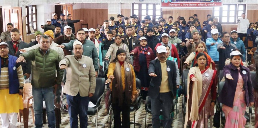 चमोली 25 जनवरी । 16वें राष्ट्रीय मतदाता दिवस के एक दिन पूर्व शनिवार को जनपद चमोली के सभी शासकीय कार्यालयों एवं कलेक्ट्रेट परिसर में मतदाता जागरूकता कार्यक्रम आयोजित किए गए। इस अवसर पर जिला निर्वाचन अधिकारी/ जिलाधिकारी गौरव कुमार द्वारा कलेक्ट्रेट परिसर के अधिकारियों एवं कर्मचारियों को मतदान की शपथ दिलाई गई। साथ ही राजकीय इंटर कॉलेज गोपेश्वर में एक भव्य कार्यक्रम का आयोजन किया गया।कार्यक्रम का शुभारम्भ मुख्य अतिथि जिलाधिकारी गौरव कुमार द्वारा दीप प्रज्वलित कर किया गया। इस दौरान विद्यालय की छात्राओं द्वारा रंगारंग सांस्कृतिक कार्यक्रमों की प्रस्तुति दी गयी।