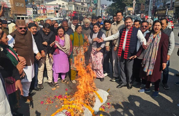 देहरादून 10 जनवरी। अंकिता भंडारी हत्याकांड में वीआईपी के नाम का खुलासा होने पर युवा कांग्रेस की प्रदेश उपाध्यक्ष स्वाति नेगी के नेतृत्व में युवा कांग्रेस कार्यकर्ताओं द्वारा आज भाजपा सरकार की शव यात्रा निकालते हुए ऐस्लेहॉल चौक पर पुतला दहन किया गया। कार्यक्रम में बडी संख्या में कांग्रेस नेता एवं कार्यकर्ता उपस्थित थे। पूर्व निर्धारित कार्यक्रम के तहत कांग्रेस कार्यकर्ता नारेबाजी करते हुए स्वाति नेगी के नेतृत्व में प्रदेश कार्यालय से शव यात्रा लेकर ऐस्लेहॉल चौक पहुंचे जहां पर उन्होंने भाजपा सरकार के पुतले को आग के हवाले किया। युवा कांग्रेस की प्रदेश उपाध्यक्ष स्वाति नेगी ने कहा कि अंकिता भंडारी हत्याकांड मामले की भाजपा राज्य सरकार सीबीआई जांच को तैयार नहीं है, इससे साबित हो गया है कि भाजपा सरकार बलात्कारियों और हत्यारों के साथ खडी है। उन्होंने यह भी आरोप लगाया कि देवभूमि में सबसे जघन्य हत्याकांड भाजपा सरकार और पुलिस के संरक्षण में भाजपा नेता के रिसोर्ट में हुआ और इस हत्याकांड में भाजपा का राष्ट्रीय नेतृत्व, राज्य नेतृत्व एवं स्थानीय विधायक शामिल थे, यह देवभूमि के लिए कलंकित करने वाली बात है। स्वाति नेगी ने कहा कि मुख्यमंत्री ने घोषणा की थी कि अंकिता के माता पिता से बात कर सीबीआई जांच कराई जायेगी और अब जबकि अंकिता भंडारी के माता पिता दोनों ने उच्चतम न्यायालय के जज की निगरारी में सीबीआई जांच की मांग की है तो भाजपा सरकार क्यों पीछे हट रही है। उन्होंने मुख्यमंत्री से मांग की कि दोषियों के खिलाफ हत्या और हत्या के सबूत मिटाने के लिए सक्षम धाराओं में मुकदमा दर्ज किया जाना चाहिए तथा दोषी कितने भी बडे हों उनको दण्डित किया जाना चाहिए। उन्होंने यह भी कहा कि भाजपा सरकार और संगठन को स्पष्ट करना चाहिए कि वह बलात्कारियों और हत्यारों के साथ खड़ी है या अंकिता भंडारी के साथ। उन्होंने यह भी कहा कि भाजपा के मुख्यमंत्री को इस हत्याकांड की जिम्मेदारी लेते हुए नैतिकता के आधार पर तत्काल इस्तीफा दे देना चाहिए। कार्यक्रम में गोदावरी थापली ,वीरेंद्र पोखरियाल ज्योति रौतेला लालचंद शर्मा गरिमा मेहरा दसौनी अभिनव थापर, रॉबिन त्यागी, शुभम चौहान, विनीत प्रसाद भट्ट, मोहन काला, मोहित मेहता, प्रांचल, सिद्यार्थ अग्रवाल, सिद्वार्थ, धर्मेन्द्र, कृष्णा मारवाह, सुलेमान अली, ललित भद्री, ओमप्रकाश सती, रिया राणा, वन्दना राही, सूरज क्षेत्री आदि अनेक कांग्रेस कार्यकर्ता उपस्थित थे।