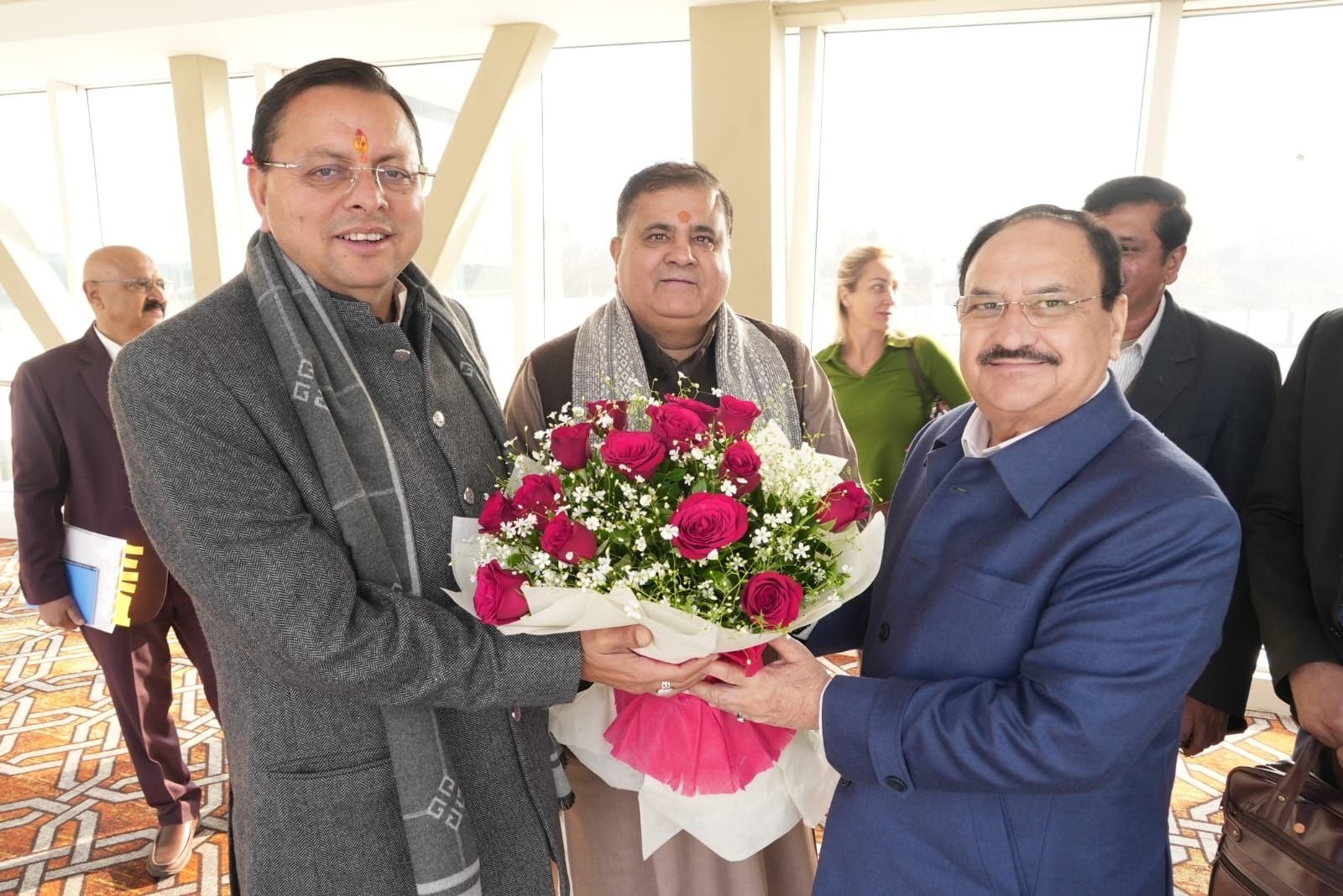 देहरादून , 15 फरवरी। ऋषि-मुनियों की तपोभूमि, धर्म और अध्यात्म की वैश्विक राजधानी देवभूमि उत्तराखंड आगमन पर केंद्रीय स्वास्थ्य एवं परिवार कल्याण और रसायन व उर्वरक मंत्री जगत प्रकाश नड्डा का उत्तराखंड राज्य के मुख्यमंत्री पुष्कर सिंह धामी ने जौलीग्रांट एयरपोर्ट पर स्वागत एवं अभिनंदन किया। इस अवसर पर भारतीय जनता पार्टी के प्रदेश अध्यक्ष एवं राज्यसभा सांसद महेंद्र भट्ट उपस्थित रहे।